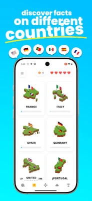 Con Geolio, l'apprendimento si trasforma in un'esperienza dinamica e coinvolgente grazie a un'ampia varietà di sfide tematiche. Esplora categorie che spaziano dalla geografia fisica e umana al ricco patrimonio culturale, dai monumenti più iconici alle curiosità più singolari di ogni angolo della Terra. Ogni giorno, inoltre, troverai nuove prove ad attenderti: le sfide quotidiane sono pensate per stimolare la tua costanza e premiare la tua dedizione. Accumula serie positive e sblocca riconoscimenti esclusivi che rendono ogni sessione ancora più gratificante.
