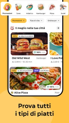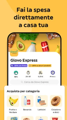 La varietà culinaria è a portata di mano: dai classici fast food come McDonald's, Burger King e KFC, alle specialità esotiche di sushi, poké e kebab. Con Glovo, l'esperienza gastronomica è illimitata, con migliaia di locali pronti a deliziarti in pochi minuti. Ma l'offerta non si ferma al cibo: hai dimenticato il latte o hai bisogno di rifornire la dispensa? Glovo collabora con catene come Carrefour, PENNY. ed Eataly per garantirti la consegna rapida dei tuoi generi alimentari. E per le esigenze più inaspettate, da un regalo di Kiko Milano a un articolo di Decathlon o MediaMarkt, l'applicazione è il tuo centro acquisti personalizzato, coprendo una vasta gamma di prodotti da oltre 27.000 negozi.
