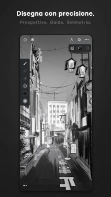 La precisione e la versatilità sono al centro dell'esperienza con Infinite Painter. Esplora strumenti superiori come i quattro tipi di simmetria, ideali per pattern complessi o illustrazioni bilanciate. Gestisci composizioni elaborate con livelli e metodi di fusione che richiamano gli standard professionali, garantendo un controllo totale sul tuo lavoro. Linee impeccabili e forme perfette sono a portata di mano grazie a guide intuitive: Linea, Ellisse, Penna, Lazo e Goniometro. Per chi ama gli sfondi dinamici o le architetture, Infinite Painter offre anche cinque guide prospettiche differenti, trasformando la creazione di paesaggi urbani 3D in un gioco da ragazzi. L'interfaccia, elegante e ben organizzata, mette ogni funzione al posto giusto, permettendoti di concentrarti esclusivamente sulla tua arte.