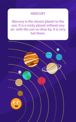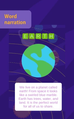 "Solar System for Kids - Learn Solar System Planets" è un'app educativa che introduce i bambini al Sistema Solare e ai suoi pianeti in modo divertente. Imparano a riconoscere i nomi dei pianeti, la loro ortografia e gli alfabeti con suoni in inglese, francese, tedesco, italiano, giapponese e spagnolo, rendendo l'apprendimento facile e coinvolgente.