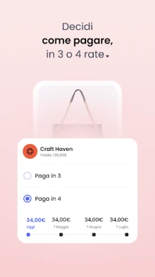 La libertà di scegliere e la comodità di pagare si uniscono in un'unica esperienza intuitiva. Con Scalapay, individuare i negozi fisici nelle tue vicinanze che accettano il pagamento dilazionato è semplice grazie alla mappa integrata, permettendoti di completare i tuoi acquisti e dividerli in tre rate direttamente dal tuo smartphone, senza pensieri. La gestione del tuo account è a portata di mano: l'applicazione ti offre una panoramica completa di ordini e pagamenti, facilitando l'aggiornamento dei tuoi dati e rendendo ogni transazione successiva un processo rapido e incredibilmente sicuro.