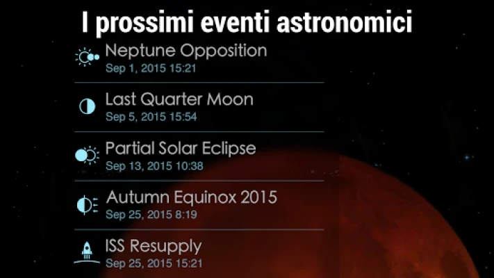 Sperimenta la maestosità e la precisione dell'universo con una fedeltà sorprendente. Solar Walk 2 riproduce i movimenti planetari con un'accuratezza scientifica ineguagliabile, permettendoti di assistere a fenomeni come un'eclissi solare direttamente dallo spazio, osservando l'ombra proiettarsi sul nostro pianeta e identificando le regioni interessate con esattezza temporale. Segui le tracce di missioni iconiche: dal leggendario Sputnik in orbita terrestre ai rover marziani che solcano il paesaggio del Pianeta Rosso. Ogni fase cruciale di queste esplorazioni è scrupolosamente evidenziata nel calendario, arricchita dalle più recenti texture e immagini catturate durante le spedizioni più recenti, incluse quelle su Plutone, rendendo Solar Walk 2 un simulatore spaziale all'avanguardia.