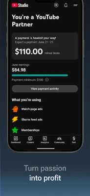 Scopri YouTube Studio, l'app ufficiale per i creator. Comprendi gli interessi della tua community e interagisci con il tuo pubblico direttamente dal tuo dispositivo. Gestisci il tuo canale in modo efficace, ovunque tu sia, per un coinvolgimento costante e un'analisi approfondita delle tue performance.